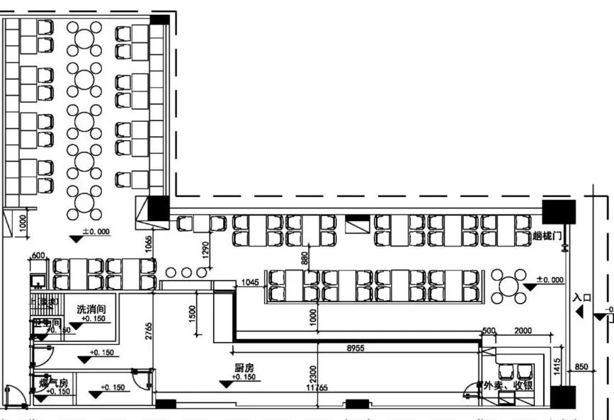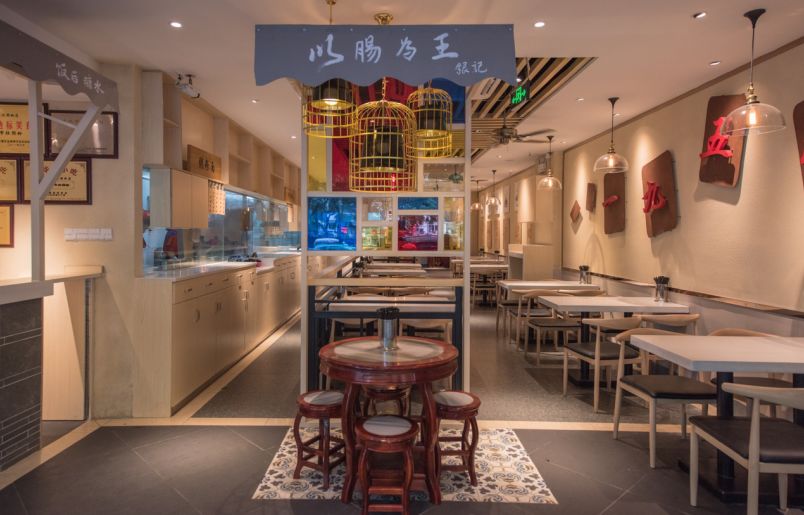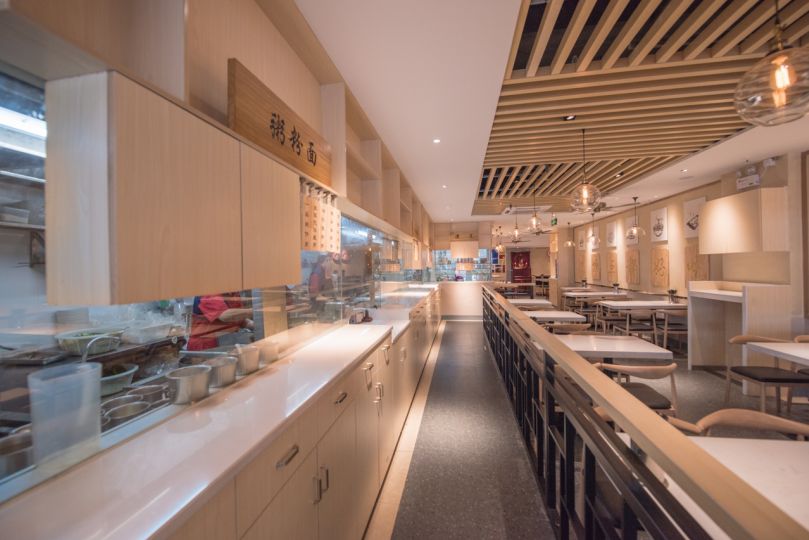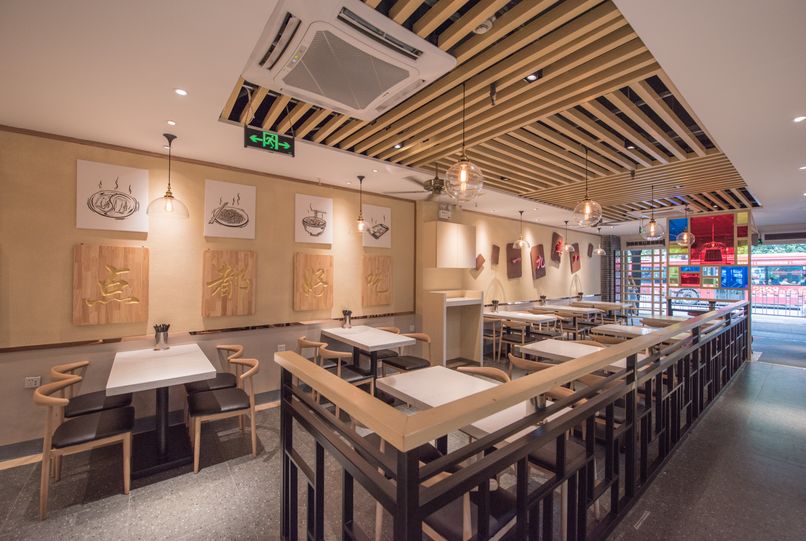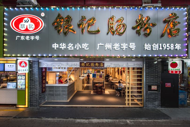 为此,位于天河区燕岭路中元广场1楼的银记肠粉店在集美山田组的设计帮助下,完成了一次华丽的现代化转身。