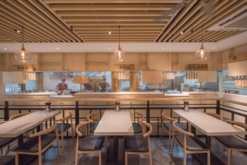 明厨设计,扩展视野,增强空间通透感的同时,将原料食材、餐品的制做过程等透明地展现给消费者,让消费者更放心,增强顾客对品牌的信赖感。